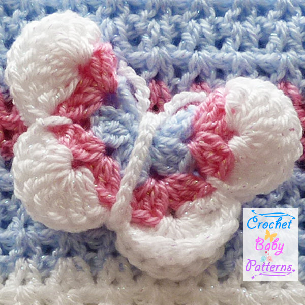 Sweet and pretty baby blanket with butterfly applique, perfect for cots, strollers etc.
