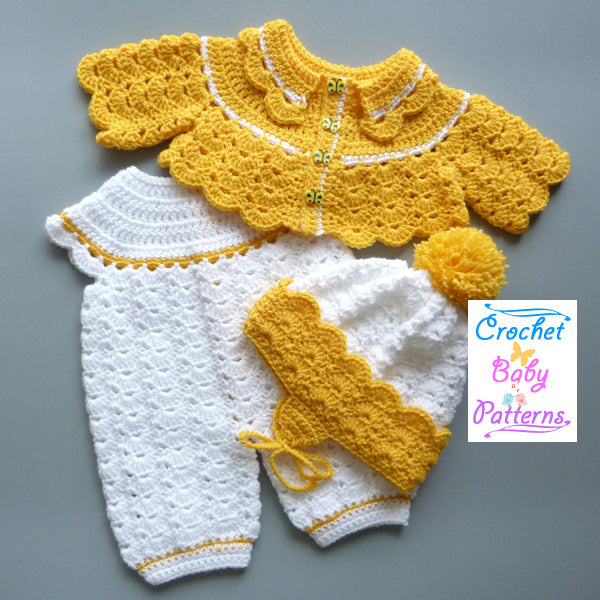 A beautiful three piece outfit, ideal for your own little one or as a gift for a family or friends baby. The set consists of rompers, helmet and short jacket.