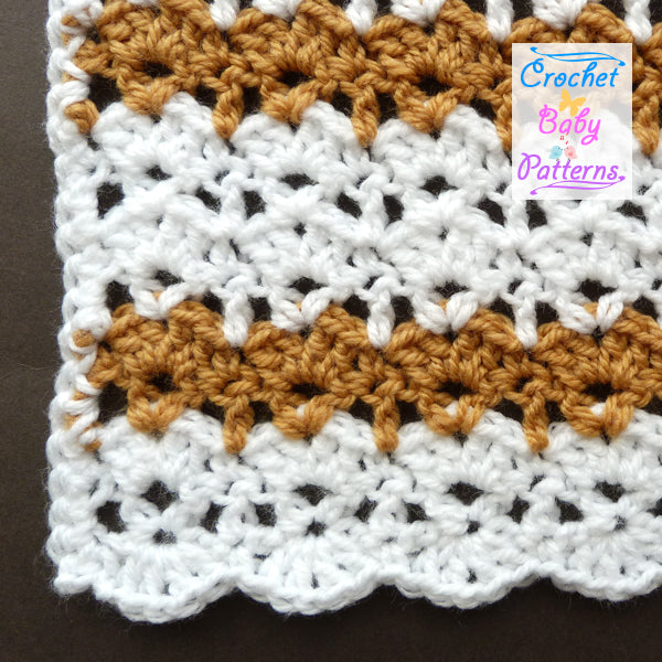 This beautiful baby blanket uses a simple shell and Vst design, it’s made on a large hook with #4 (aran) yarn, if you are looking for a last minute baby shower gift this is ideal as it is so quick to make.