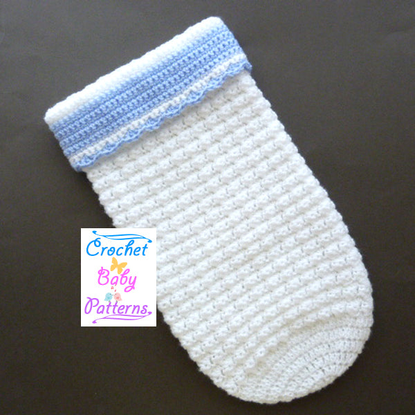 Baby Tommys crochet snooze cozy and hat is just the pattern for grandma to make for the new grandchild in the family, the new baby will look so cute and snug. Made in the round using a one row pattern of a close textured combo stitch for warmth.