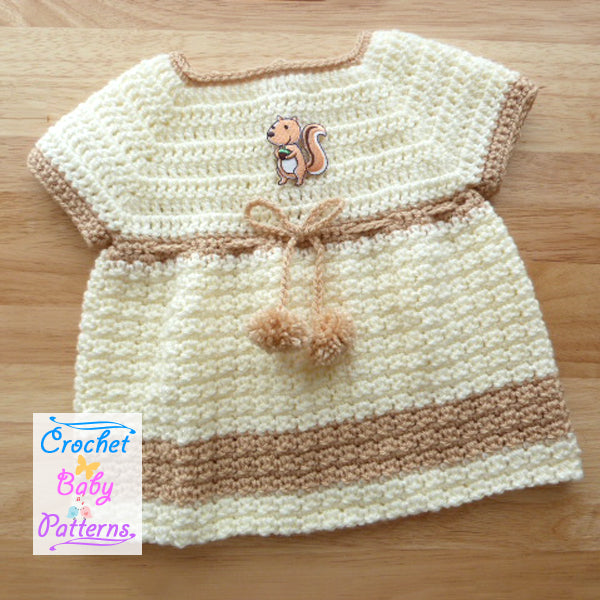 A sweet little dress to fit a newborn baby girl, 3 buttoned opening on the back of yoke, so easy to pop over babies head. I have made it in autumn colours of woodland greens and browns, but it would look great in pastel colours too, an addition to my woodland collection.